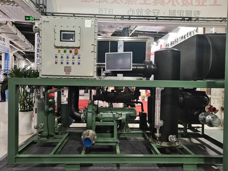 设备名称:深冷冷凝回收机组 应用:VOCs废气处理,物料回收 工作温度:-60℃ 压缩机:半封闭双级螺杆式(复盛) 防爆等级:DIIBT4 电控柜:正压防爆、PLC 冷却形式:风冷 项目地点:山东